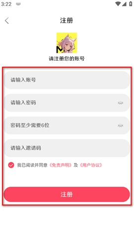 4、填写账号、密码及确认密码,勾选同意相关协议后点击注册按钮即可完成注册。