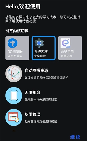 1、在本页面打开rains浏览器,在这里我们可以浏览内容并切换内核