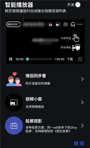 3、高智能播放器配置,可实现情侣同步观看、视频小窗播放以及投屏观影功能