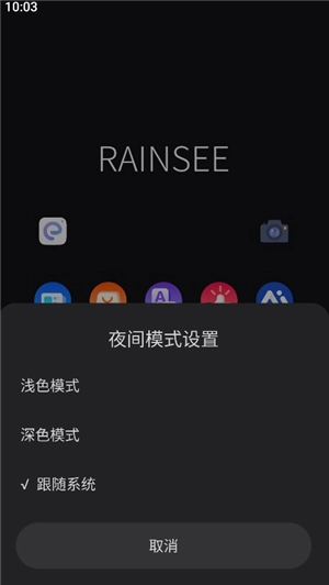 2、我们点击“夜间”选项,在这个界面里能够选择浅色模式或者深色模式。