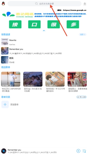 2、利用顶部的搜索栏,输入歌手姓名、歌曲名或者专辑名称,就能迅速定位到想要聆听的音乐。