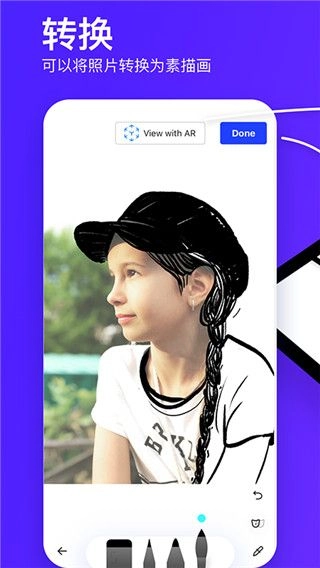 1、AR绘画模式支持用户在现实平面上查看虚拟素描图,用户只需拿起铅笔顺着虚拟线条进行勾勒,就能完成作品。