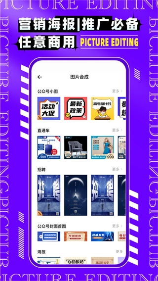 2、创意拼图:支持单张或多张图片拼合,可自由调整拼图布局,打破传统拼图的刻板感。一张图片难以展现多面的你,而随心搭配正是我们所倡导的生活态度。