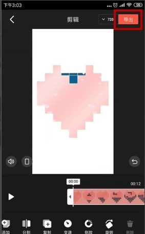 8、点击右上角的【导出】按钮,即可将剪辑后的视频保存下来。