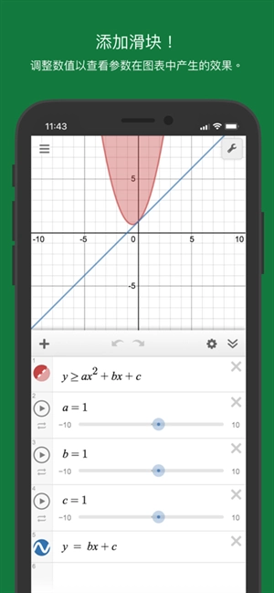 2、支持在函数表达式里添加参数,通过滑块调整参数的取值,使参数变化能实时呈现在图象上