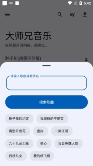 答:在大师兄音乐的搜索框里,输入歌手名称、歌曲名称、专辑名称等关键词,点击搜索按钮,就能找到相关的歌曲。