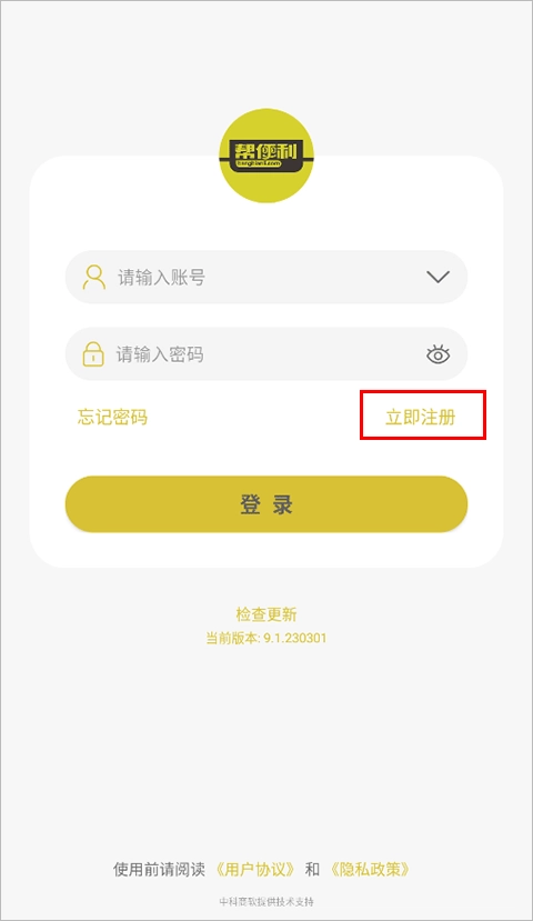 1、进入软件的登录界面后,我们点击登录按钮右下方的【立即注册】按钮。
