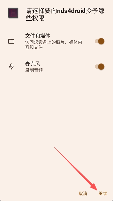 2、在弹出的权限授予页面里,点击右下方的“继续”选项。