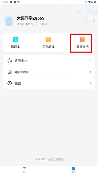 1、打开进入作业帮图书“我的”,点击【教辅激活】