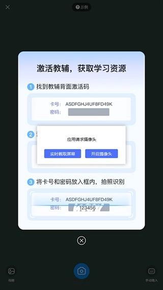 2、进入教辅激活页面,输入激活码对应的卡号与密码,然后点击【立即激活】按钮