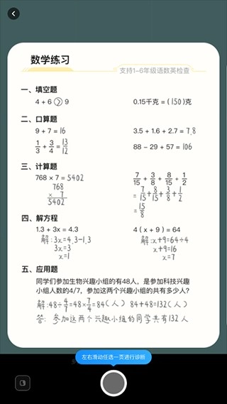 2、智能批改:对题目或试卷进行拍照即可完成批改,作答结果能瞬间给出正误判断