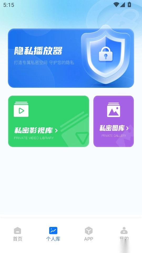 2. 在软件首页界面找到底部菜单栏中的“个人库”功能按钮,点击该按钮进入下一步操作。