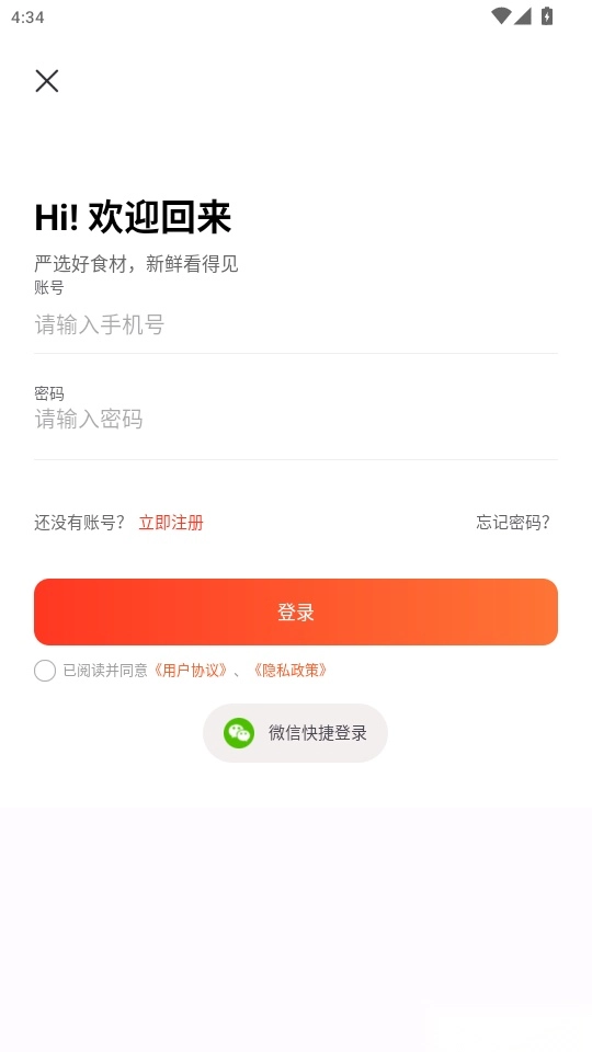 2.输入号、密码点击“登录”即可一键登录采购食材