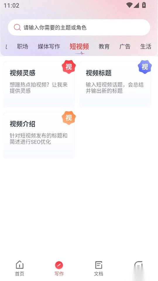 “资深编剧”“资深翻译官”“学习顾问”等虚拟角色,可为用户提供专业化的写作指导。