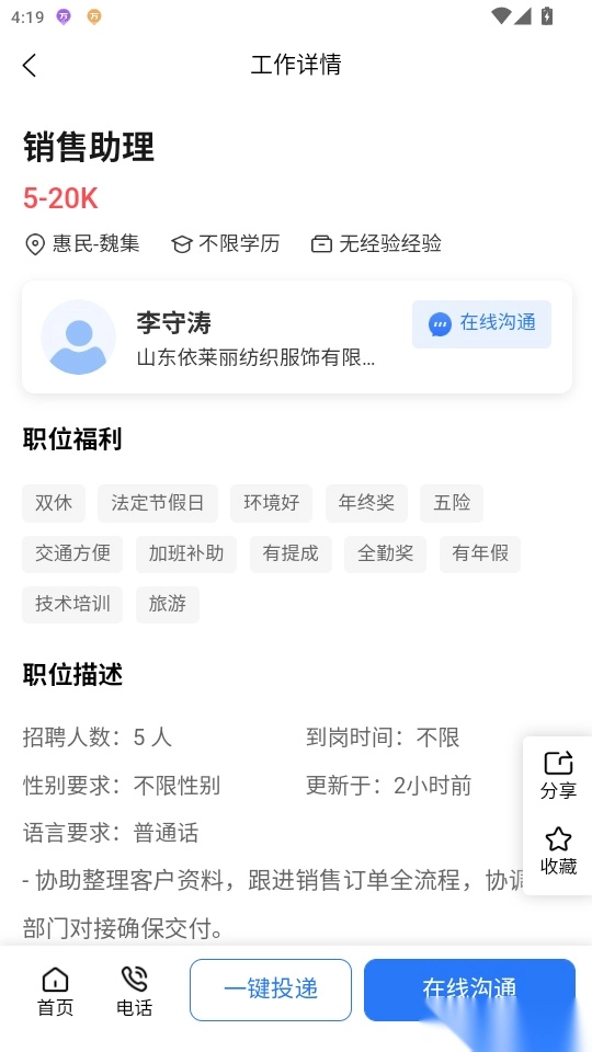 你可以对心仪的职位工作进行筛选查找,也能依据自身的工作需求一键筛选出想要的职位工作。