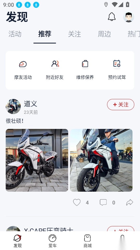 还设有线上专属的摩友社交圈,便于用户自由分享图文视频,通过加入社群结识更多骑行伙伴。