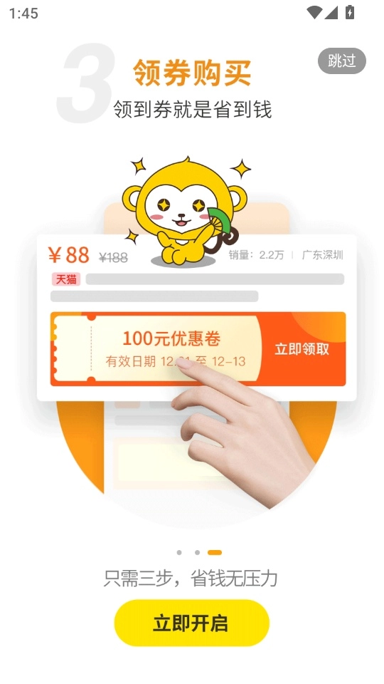 2. 随后简要滑动浏览应用的三步功能介绍,接着点击“立即开启”按钮进入下一步。