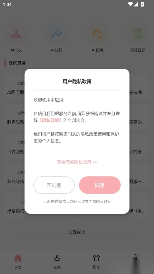 1.打开软件阅读“用户隐私政策”点击“同意”进入