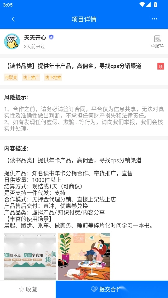 你可以随时向感兴趣的项目提交合作意向,快速对接商务合作交易。