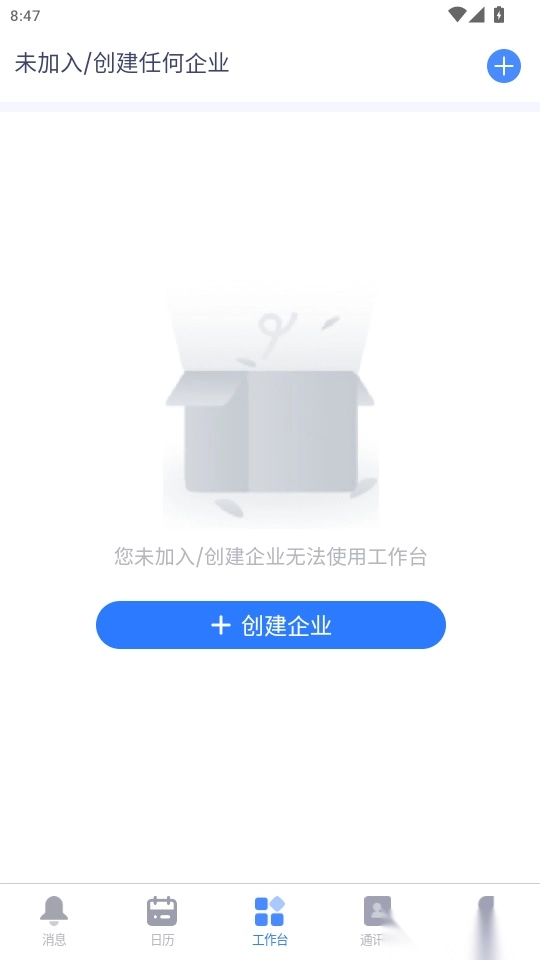 3. 进入“工作台”页面后,点击“创建企业”功能以进入下一步操作