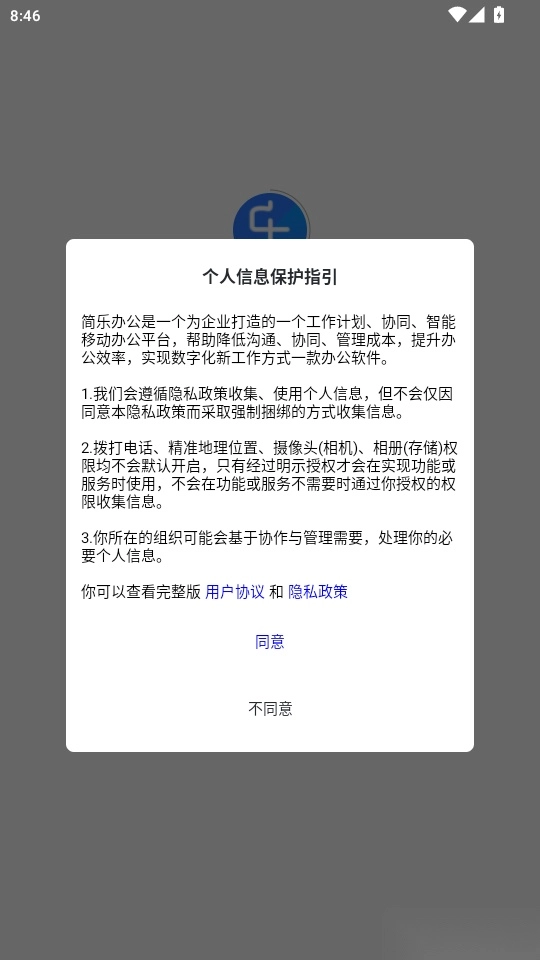 1. 启动软件后,阅读“个人信息保护指引”,点击“同意”按钮进入下一步。