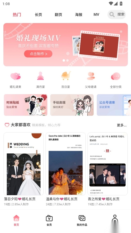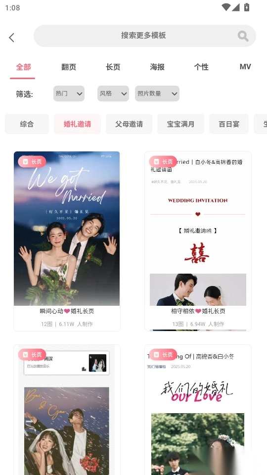 你可以对各类想要的电子请柬模板进行一键搜索查找,借助关键词搜索的方式找到自己喜欢的请柬模板。