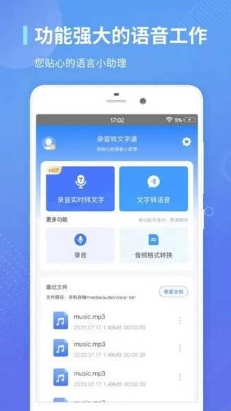 录音转文字通高级版是一款备受欢迎的常用工具类软件,它具备诸多强大功能。用户借助该软件能将录音内容转化为文字,其支持多种语言识别,不仅转换速度快,精准度也很高。无论是工作还是日常生活中,直接录音后再转文字,能显著节省做笔记的时间,有需要的用户可以使用录音转文字通高级版哦!