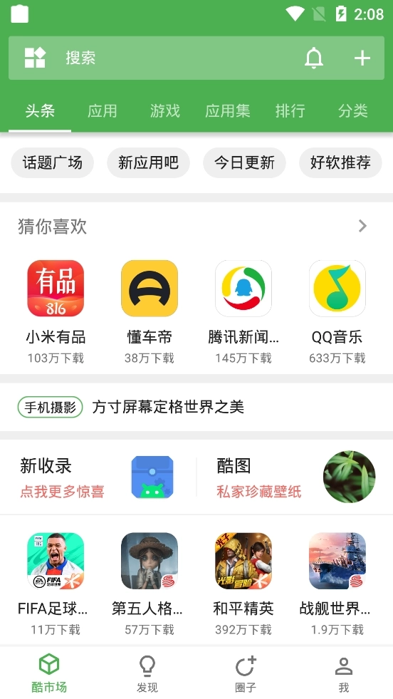 4、酷安VN版更像是从原版中拆分出应用功能的子版本!原版大小超过40MB,VN版仅6MB。接下来我们重点看看其中的资源分类,分类栏包含应用、游戏、应用集、排行等内容。