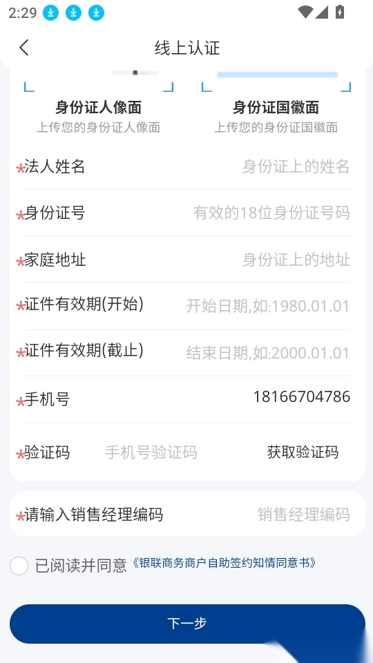 5、资料填写完成后,点击“下一步”按钮即可一键完成认证。