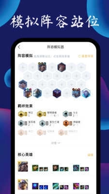 游戏数据方面,英雄的装备数据、评级情况,羁绊与职业相关数据,还有天选概率等各类数据都十分完备,应有尽有。