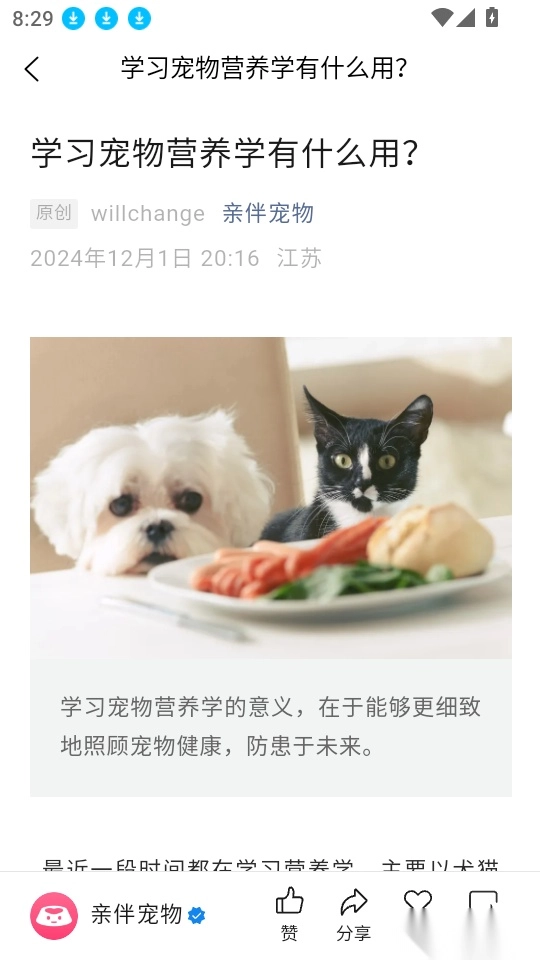 5、这样就能查阅宠物科普文章的内容,随时查看详情了。