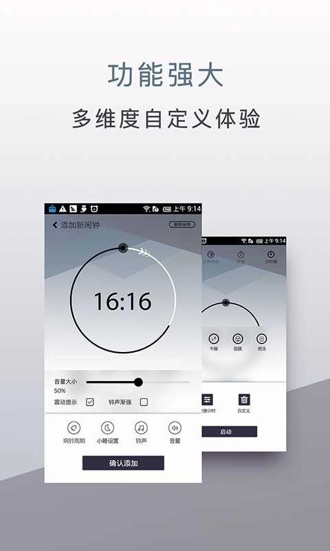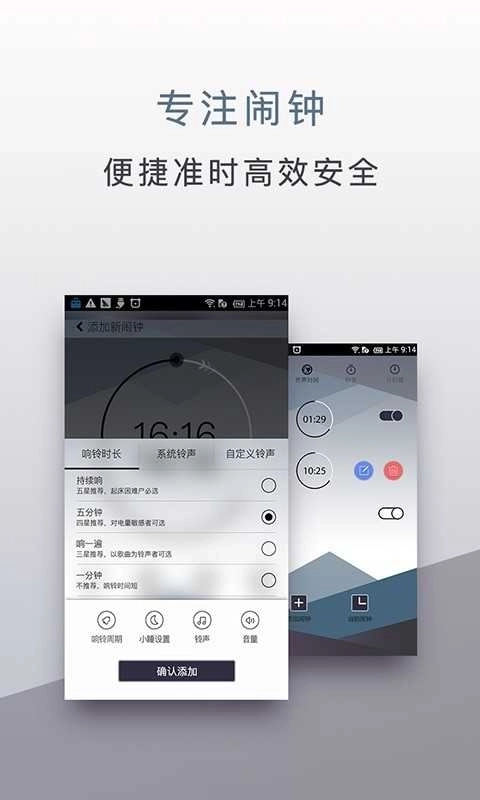 3、自定义铃声功能:用户能够挑选自己喜爱的铃声或音乐来设定为闹钟铃声,也可以选用系统提供的音效或者语音提示音。