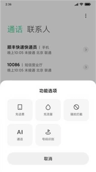 Aicall版(基于MIUI版)在2.1版的基础上新增了“个性化设置”功能,并对“自动接听设置”进行了优化。