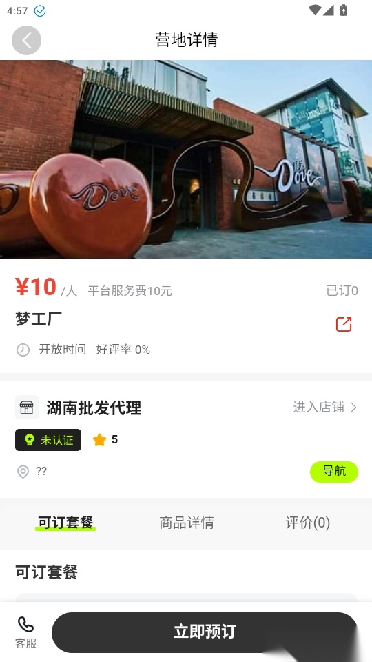 4. 进入营地详情页面后,点击“立即预订”按钮就能直接下单预订营地使用。