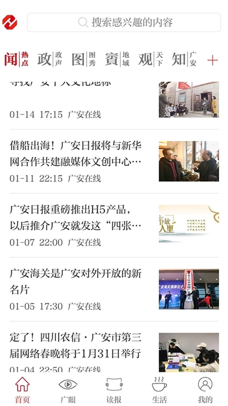天下广安移动客户端由广安日报社精心打造推出,整合了社交互动、新闻资讯、生活服务等丰富功能模块。平台实现每期内容线上线下同步更新,用户无需出门购买纸质报纸,即可随时随地快速获取最新一期的报刊资讯;遇到生活难题时,还能通过平台进行爆料投诉,助力解决实际问题,让广安市民的生活更加便捷美好。该客户端始终致力于为用户构建便捷的生活空间,提供贴心周到的本地生活服务体验。