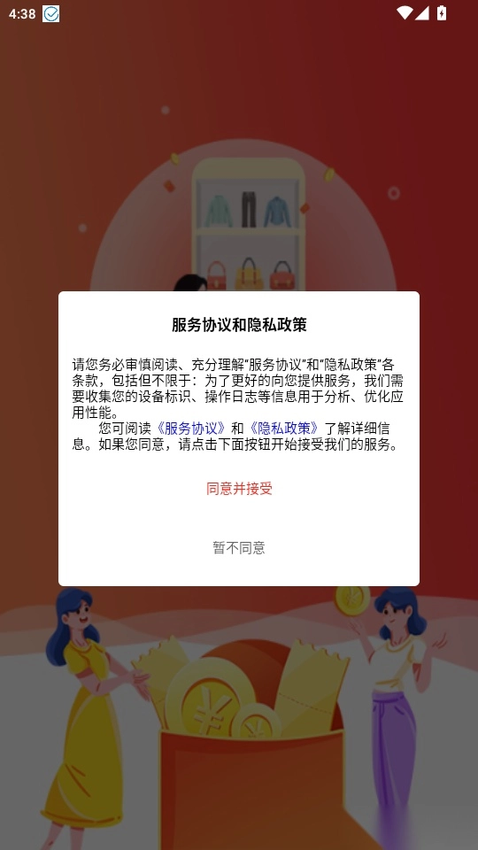 1. 打开软件后,阅读“服务协议和隐私政策”,点击“同意并接受”按钮进入下一步。