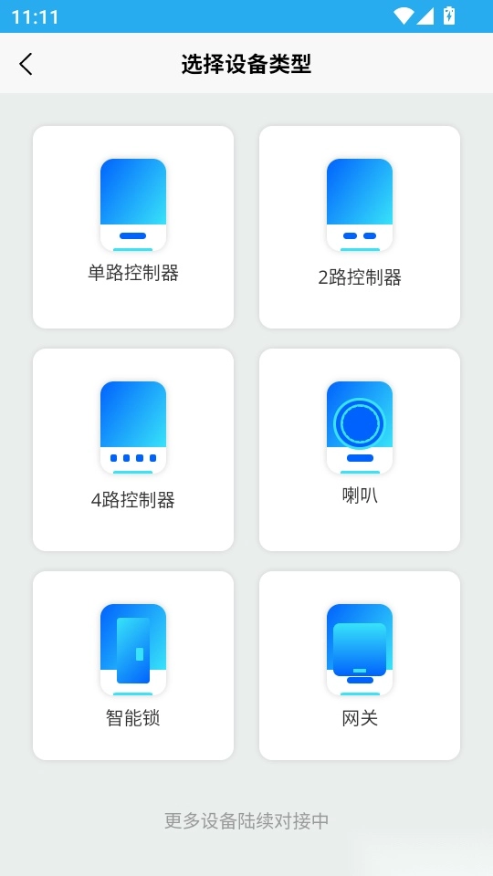 4. 随后进入“选择设备类型”的菜单界面,点击“智能锁”按钮以进入下一步操作