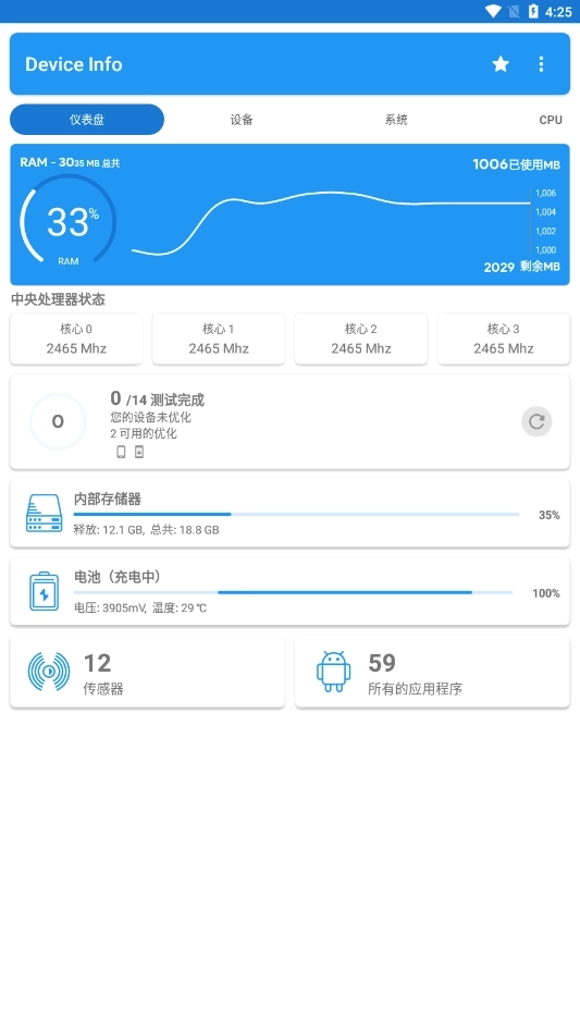 DeviceInfo解锁高级版是一款功能强大的系统工具类应用,主要用于帮助用户详细了解其手机或安卓设备的硬件信息及进行功能检测。它能提供详尽的手机硬件信息,涵盖CPU、RAM、存储、操作系统、传感器、核心、电池、相机、显示器、制造商等方面。