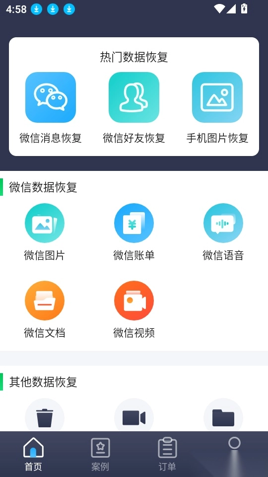 恢复数据管家大师能让用户轻松找回自己的数据,助力用户快捷恢复操作,针对各类数据均可一键恢复;它具备极速深度扫描数据的功能,以此实现一键恢复;同时用户还能查看更多成功案例,并且可以随心分享这些案例,进而查看更多好评,轻松完成数据恢复。