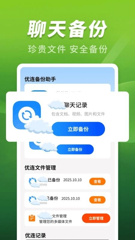 担心重要图片文件被误删?优连聊天备份助手能帮你轻松完成聊天记录中重要文件的备份管理,只要把聊天里的文件进行备份操作就行,不管是音频、图片、视频还是各类文档都能安全备份。常用工具助力提升用户日常使用体验;还能帮助分类管理备份内容,实现清晰有序的数据保护。