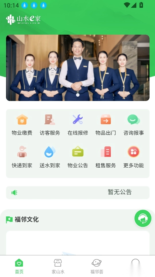 山水E家是一款为用户打造一站式社区物业服务体验的应用软件,核心服务对象为小区业主,集成了便民服务、社区商城、物业缴费、邻里互动等多元功能,用户可自由选择使用,通过便捷的物业缴费功能,能实时缴纳水电费,让生活更轻松省心。平台还支持用户在社区商城选购心仪商品,一键下单即可快速配送到家,实现足不出户轻松购物;另外,用户还能通过山水E家查看社区公告通知,及时掌握物业及社区相关信息。有需求的用户不妨来本站体验使用!
