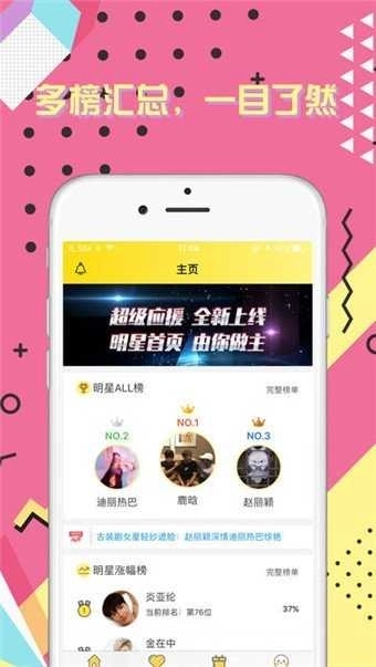 超级应援手机版整合了全网权威的明星排行榜以及各类热门应援活动。