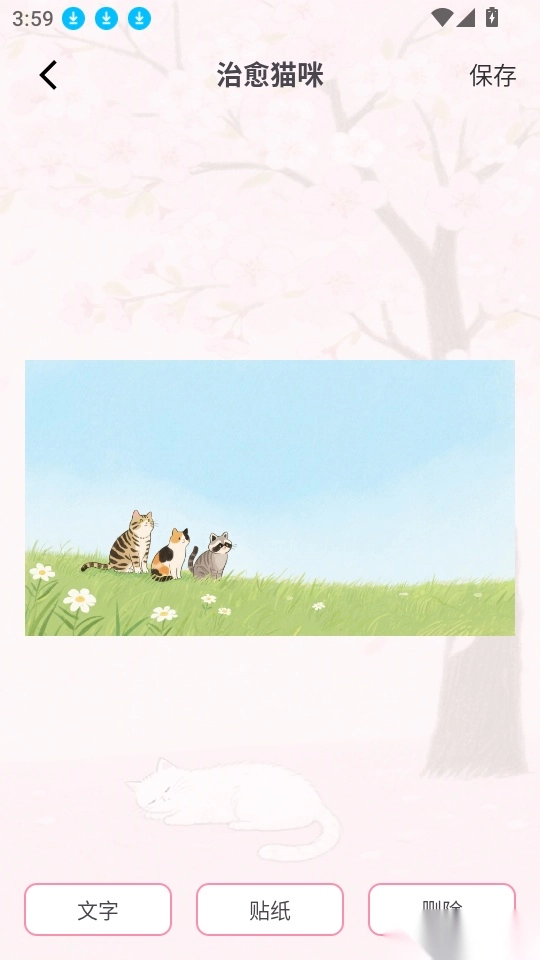 治愈猫咪主要为用户提供猫咪陪伴治愈服务,在这里能实时记录猫咪的精彩点滴瞬间,让用户轻松感受猫咪的温馨陪伴;同时还能便捷地进行猫咪照片编辑,通过添加滤镜、贴纸等方式实现个性化展示;此外,用户还可以生成专属的猫咪祝福贺卡,为自己或他人送上独特的猫咪主题祝福。