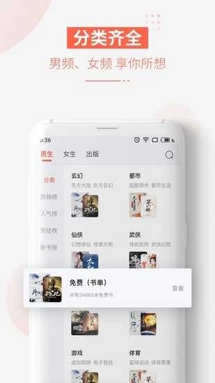 2、分类十分齐全,不管是重生爽文,亦或是都市玄幻,你都可以随意搜索自己想看的类型。