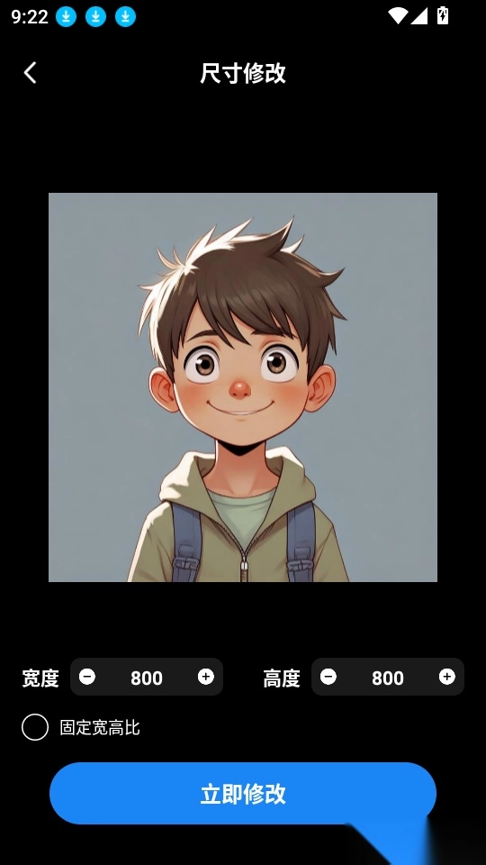 5、进入尺寸修改界面,设置“宽度”与“高度”的数值,随后点击下方的“立即修改”按钮。