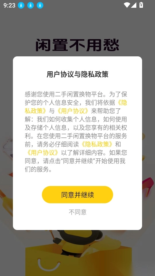 1、首先打开应用,阅读完“用户协议与隐私政策”后,点击“同意并继续”按钮进入应用。
