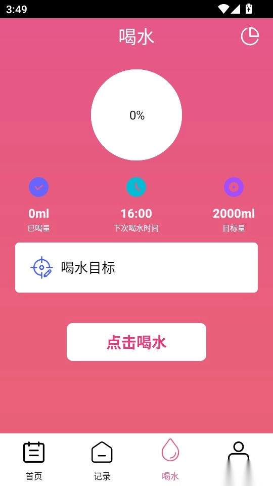 4. 随后进入“喝水”菜单界面,点击“点击喝水”功能按钮以进入下一步操作