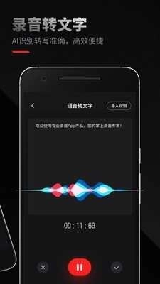 专业录音分享给大家。您的掌上录音专家!高品质录音清晰记录美好声音!多功能剪辑任意选择灵活剪辑方式!录音转文字AI识别转写准确!文件上传保护,加密储存谨防丢失!