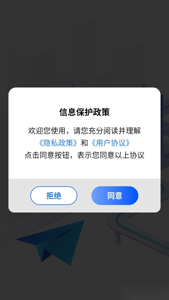 1. 第一步先打开软件,阅读完“信息保护政策”后,点击“同意”按钮即可进入程序