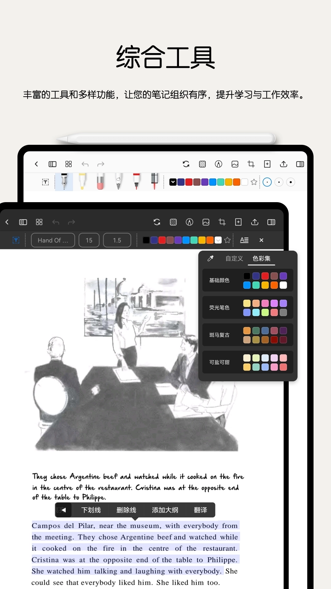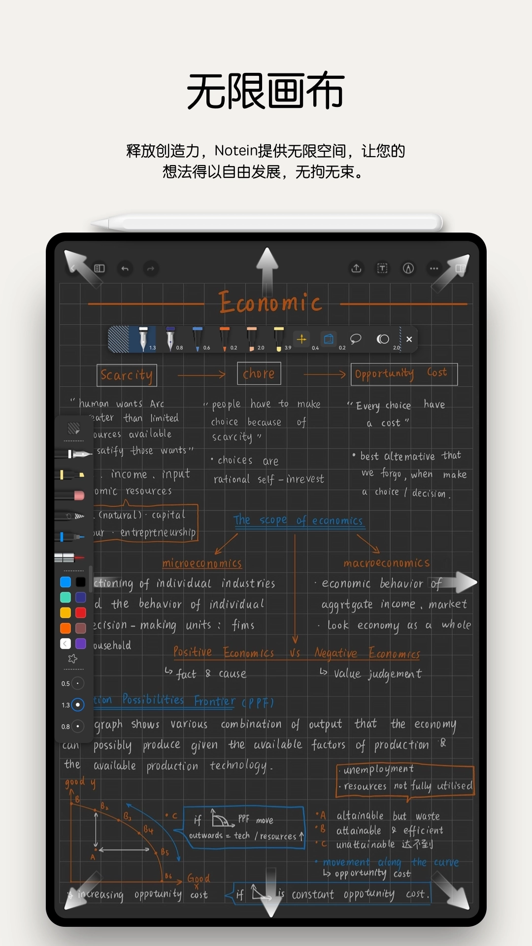 一个灵活百变的独特笔盒,可以随意拖拽和收起。每只笔单独预设对应的颜色与笔刷粗细,每本文档单独保存专属笔盒!当然,如果想把笔盒设置为全局,也没问题。